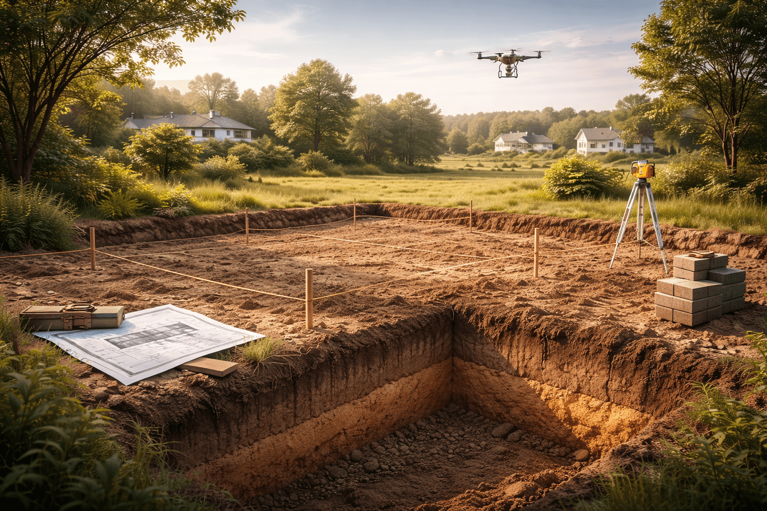 La orientación influye directamente en el confort térmico y el consumo energético. La pendiente condiciona el movimiento de tierras y el diseño de la casa. Y el tipo de suelo, analizado mediante un estudio geotécnico obligatorio, determina el tipo de cimentación necesaria.